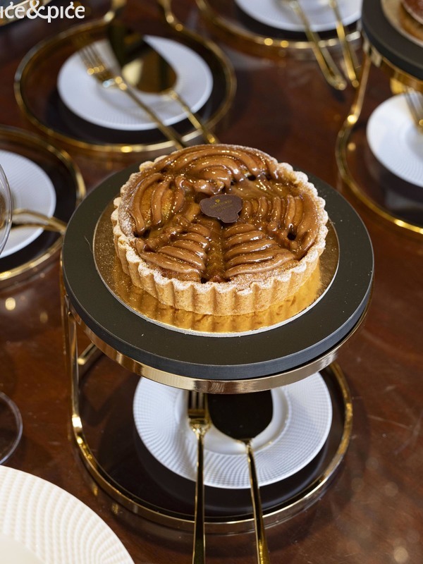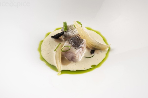 Gof, mariniran u kamilici i začinskim travama, poslužen je s gelom od limuna, puževima i umakom od lista peršina. Nastavilo se Kraljevskom krabom, kremom od raka i marcipanom te gelom od agruma. Tu se rak spojio s blagom slatkoćom marcipana i osvježavajućim citrusima – neočekivano, ali savršeno skladno. Romb na ražnjiću donio je nježno kiselkasti dodir yuzu majoneze i dimnu notu romb barbacue umaka, a svaki element naglašavao je prirodnu slatkoću ribe.