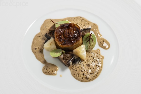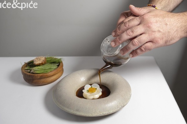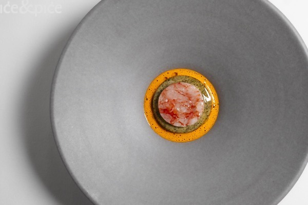 Potom je poslužen raviol punjen ovčjom ricottom i reduciranim pireom od cikle, umakom od temeljca školjki, bijelog vina i maslaca, uz dodatak ukiseljenih školjaka, ukiseljene cikle i divljih kapara.