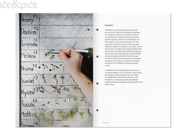 7. Gastronomska ponuda – Poglavlje koje predstavlja inovativna kulinarska djela restorana, naglašavajući nove tehnike, teksture i konceptualne pristupe koji su utjecali na suvremenu gastronomiju.