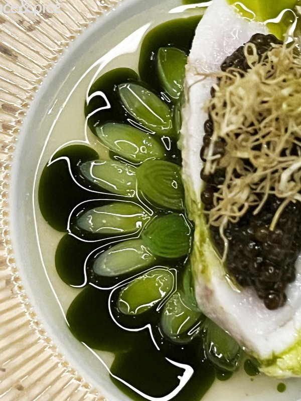Na to se nadovezao Royer svojim slijedom „Grignotages“ (tart od luka, kava, sladić, hrskavac od tune, koshihikari, ponzu) koji je također najavio obrok koji dolazi, ukusno nježan i sjajno smišljen da pobudi želju za još.