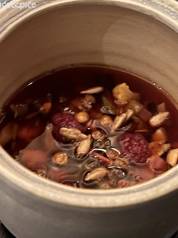 Sa slatkim zalogajima promijenio se i sadržaj čaša. Tako je poslužen koktel kir royal, naravno u lokalnoj verziji – s jabukovim vinom umjesto šampanjca i likerom od planinskog crnog ribiza, s nešto više kiseline. Slijedio je domaći vermouth di montagna 2024 (planinski vermut, na bazi lokalnog bilja).