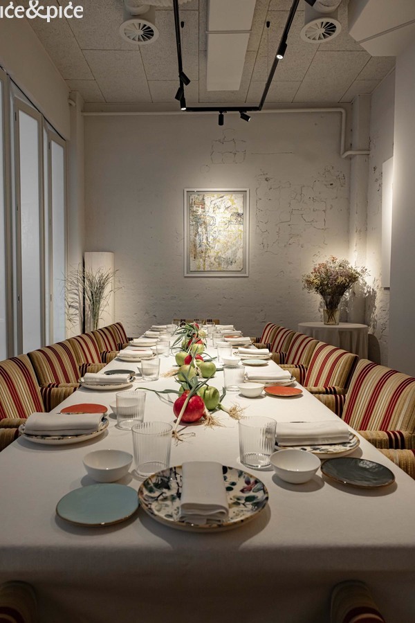 Smješten u četvrti Chamartín, daleko od predvidljive vreve centra Madrida, PABÚ djeluje kao mjesto na koje ne naletite slučajno, nego vam ga netko diskretno otkrije. Prostor je miran i nenametljiv, u toplim tonovima i tihom ritmu, onakav u kojem se glasovi spontano stišaju, a vrijeme kao da uspori. Ipak, iza te smirenosti krije se kuhinja u stalnom pokretu. Tu nema rutine, nema inercije, nema jelovnika ili menija uklesanog u kamen. PABÚ se ponovno rađa svakoga novog dana.