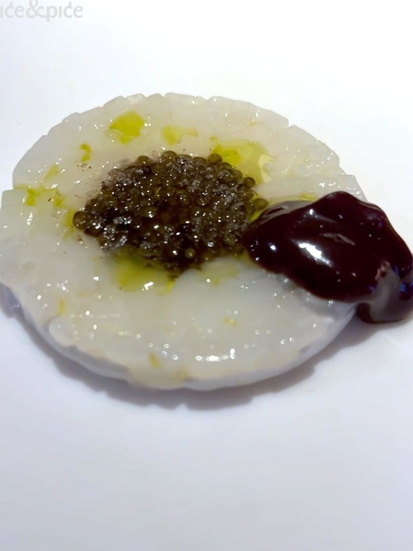 Ti uvodni botanasi (zalogaji) postavili su ton duhovitošću i preciznošću. Topla i hladna Margarita bila je razigrana reinterpretacija klasičnog koktela, poslužena kao ledena Margerita (limeta je zamijenjena zelenom mandarinom) s toplom pjenicom (60ºC, s bjelanjkom sa šećerom, nešto soli, tekile i soka zelene mandarine) na vrhu, slojeviti temperaturni pripravak koji evocira citruse i agavu. Maslina “cantina” je, pak, bila maslina transformirana modernističkom tehnikom sferifikacije (sferična tekućina od maslina) - bomba okusa koja ističe note salamure i bilja i ujedno predstavlja naklon El Bulliju, u kome je tehnika nastala.