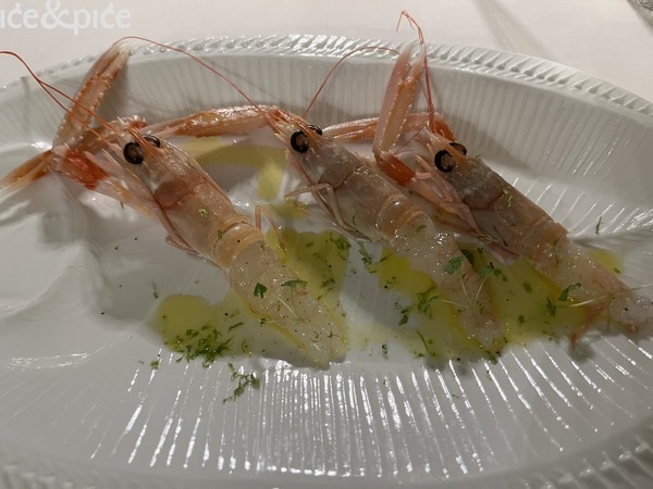 Na tako pripremljeno nepce počeli su stizati prvi mali zalogaji – minijaturni tost s kozicama, majonezom i sezamom, tatin s raguom od gljiva i pjenom od krumpira te varijacija na temu cikle - brunoise, zabaione i čips. Slijedili su mali sirovi škampi očišćenih repova, začinjeni maslinovim uljem.