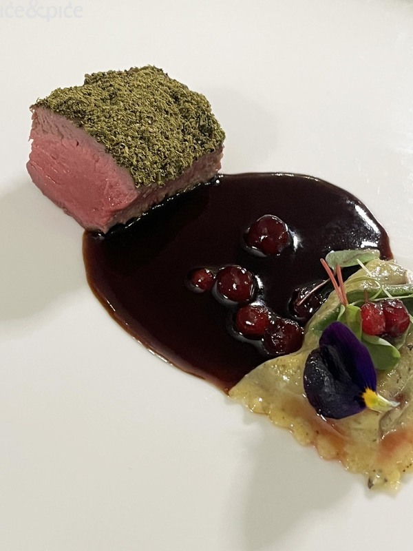 Slijedilo je glavno jelo - Srnetina s rustikalnim pizzoccherima (tradicionalna talijanska tjestenina od heljdinog brašna iz lombardske Valtelline, poznata kao izdašno planinsko jelo) i svježim borovnicama, jelo koje priziva planinske šume i jesenski lov, ukorijenjeno u terroir Lombardije.