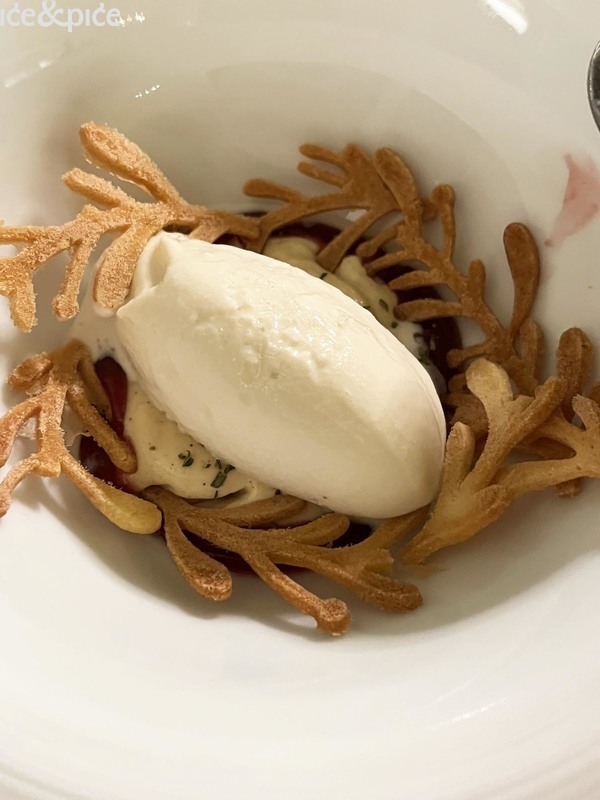 Na koncu su poslužena dva deserta – panna cotta od vanilije s umakom od jagoda i hrskavom meringom te pjenasti sladoled sa začinima i gelom od šipka sa smeđim maslacem. Niz od desetak petit foura – minijaturnih dragulja od čokolade, kolača i slatkiša nježno su zaokružili večer i dobro iskušali moju izdržljivost.