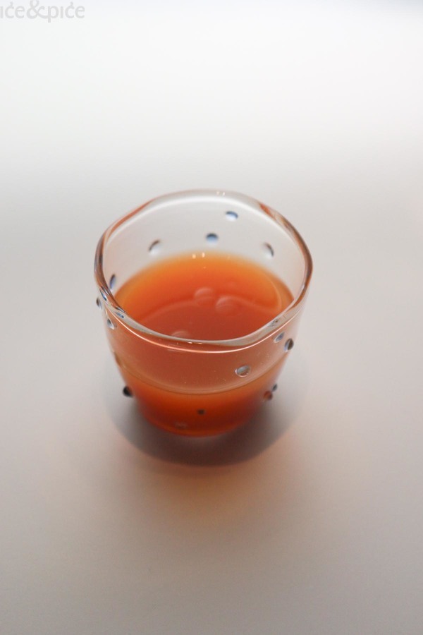 Riječ je o koktelu Bloody Mary bez rajčice, gdje je osjećaj slanosti zamijenjen kombinacijom kopna i mora. Mješavina kombinira ikru morskog ježinca i mrkvu, začine iz našeg pročišćenog koktela Bloody Mary i votku. Morski ježinac pruža slatkoću i slanost, dok mrkva dodaje teksturu i dašak slatkoće kako bi uravnotežila ježinca, čineći mješavinu glatkom i elegantnom.Tu koegzistiraju funkcionalnost i hedonizam, nešto što je stalna tema Esencije.