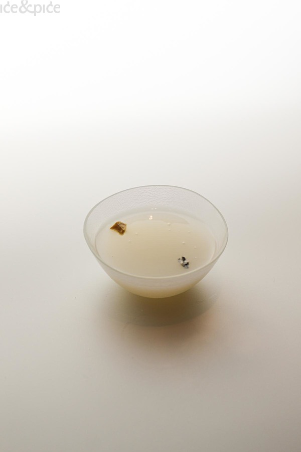 Sastojci: destilat raženog kruha, riža amazake, šafran, smrznuta pjena od maslaca, sol