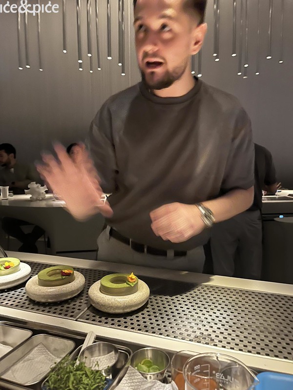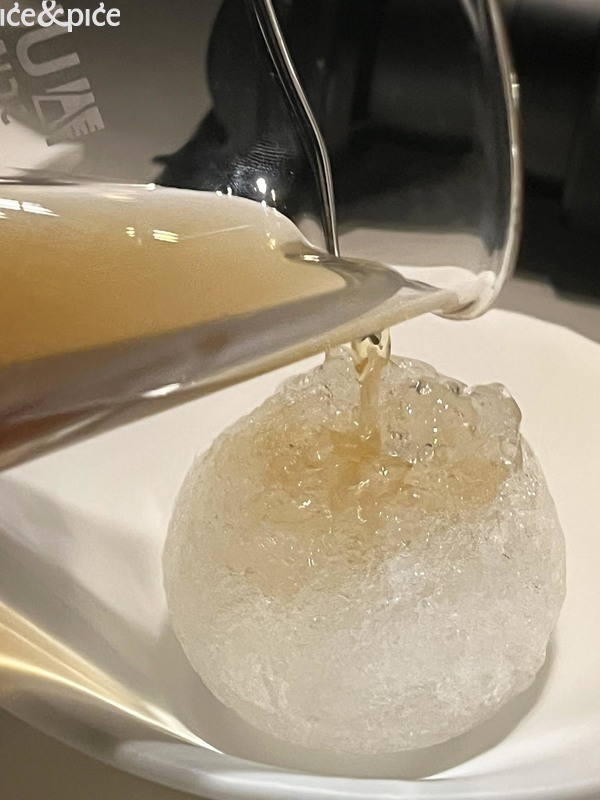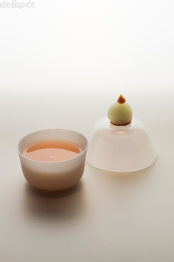 Tekućina je kombinacija nigori sakea, odnosno nefiltriranog sakea. To znači da svi ostaci škroba i kvasca ostaju u proizvodu, dajući smjesi znatno kremastiju teksturu. Tome se dodaju bijeli porto i ružičasti grejp, koji donose citrusne i cvjetne note. Uz tekućinu, tu je i čvrsta komponenta – mješavina misa, dinje i azuki paste s vanilijom. Kombinacija dinje sa slanim, fermentiranim okusom misa, zajedno sa slatkoćom azuki paste, stvara igru tekstura i okusa različitih od onih u tekućini, podižući cjelokupni doživljaj .