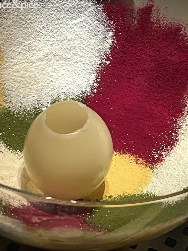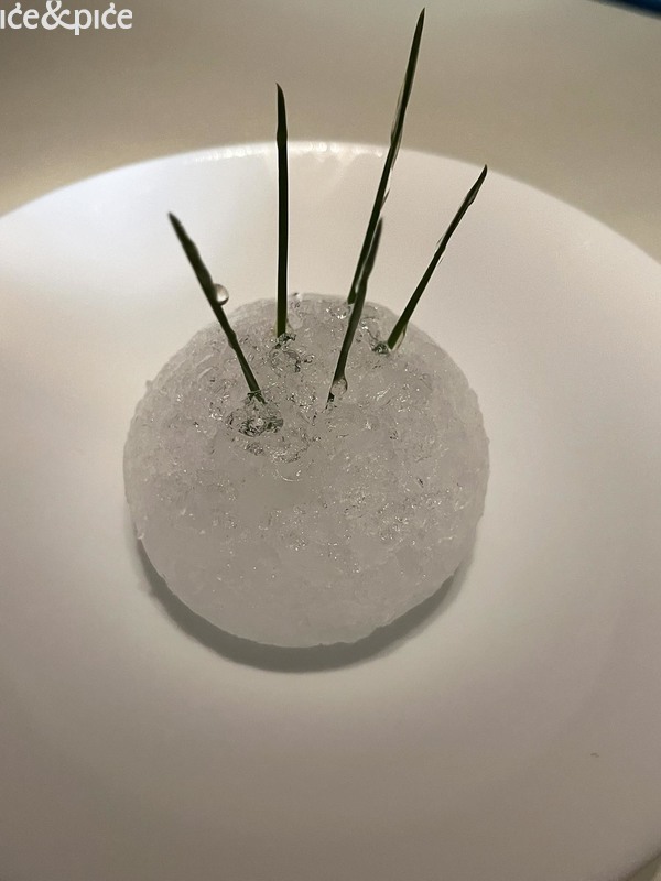 U ovom piću, ledena ploča lavande postavlja se u središte čaše, koja služi dvostrukoj svrsi - davanju cvjetnih okusa i snižavanju temperature nepca kako bi se uskladila s temperaturom tekućine. To sprječava uobičajeni kontrast između toplog nepca i hladnog koktela, koji može promijeniti percepciju okusa. Mješavina je vrlo cvjetna kako bi nadopunila lavandu. Sastoji se od vina s bazgom i ličijem, daškom kopra, a za osvježenje, nešto kavijara od limete unutar čaše. Kontrast između snijega i ledenog kristala postaje meditacija o teksturi i temperaturi, a ne samo o okusu.