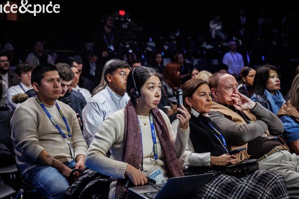 Unutra, međutim, Madrid Fusión 2026 sve je samo ne sumoran. Glavni auditorij bruji poput burze. Prevodioci namještaju slušalice, kamere lebde iznad publike, a više od tisuću sedamsto delegata traži mjesta dok zakašnjeli stoje uz zidove. Na velikim ekranima svijetli slogan: „Gost preuzima vodstvo“.