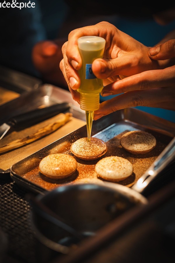 Za oba deserta, kao završna dva slijeda menija, bio je zadužen Julien Royer, točnije Louisa Lim, slastičarka Odettea, koju je Royer uključio u ekipu koja je krenula na europsku turneju.