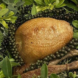 „Ovo je jelo koje jako dobro predstavlja našu kuhinju. Golub se poslužuje u kori od kambodžanskog papra koji se zove kampotski papar. Golub se poslužuje na različite načine – yakitori napravljen od srca; vrlo lagana i moderna verzija parfaita, napravljena od jetre, a zatim se prsa (u ovom slučaju radilo se o batku, op.a) poslužuju u kori od ovog prekrasnog, vrlo mirisnog, vrlo dugotrajnog papra iz Kampota u Kambodži. Morali smo isprobati mnogo različitih recepata samo da bismo imali pravu količinu začina. Ovo je jelo koje zaista naglašava ono u što vjerujem u smislu nabave namirnica, jer pticu dobavljamo iz vrlo specifičnog dijela Francuske, iz Bretanje, a sam papar zaista predstavlja ljutinu jugoistočne Azije. Rabimo tehnike kuhanja koje su francuske, ali i japanske, poput malo yakitorija na binchotan ugljenu“.