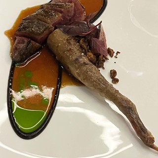 Trilja (umak X.O., patlidžan) Hansa Neunera bila je šarena i vizualno neobično atraktivna prezentacija jedne od najukusnijih manjih riba, tu dodatno intrigantna zahvaljujući dodatku umami okusa umaka X.O. (ljuti umak od morskih plodova, podrijetlom iz Hong Konga), sve uravnoteženo blagim patlidžanom.
