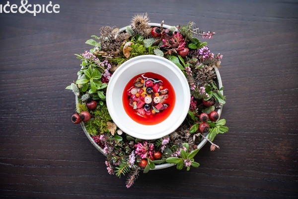 Zahvaljujući kontinuiranom dijalogu s prirodom, gdje svaki sastojak otkriva priče o tradiciji, kulturi i istraživanju, zdjelica telećih tripica ponudila je njihovu kombinaciju s kremom od šipka, fermentiranim prahom od rajčice i crvenim kupusom. Ukratko, živopisan gastronomski izraz alpskog područja.