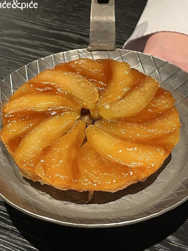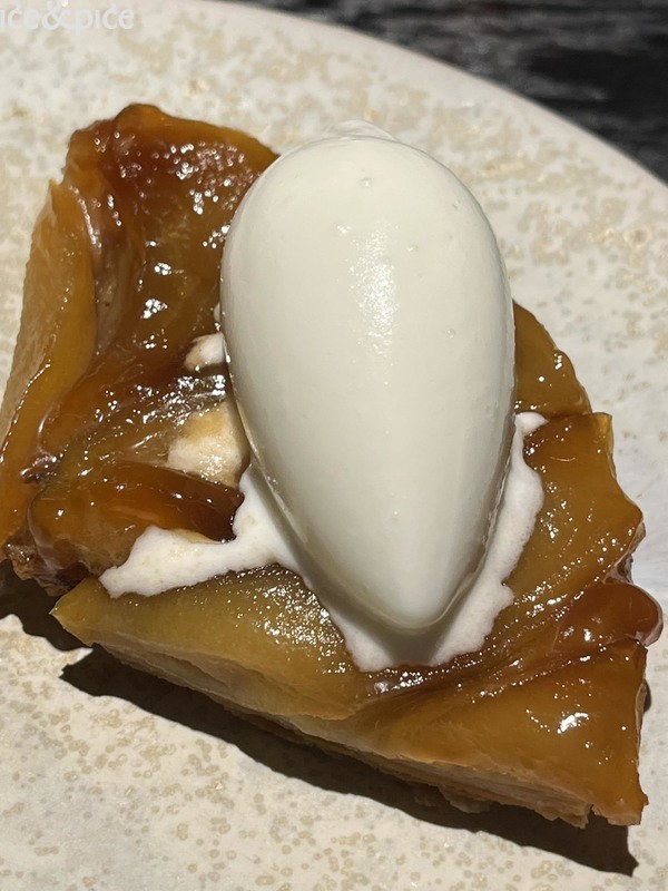 Naredni, glavni desert spojio je dva „neugledna sastojka“ – heljdu i kukuruz, u obliku krema, poslužen u dvije zdjelice i namijenjene za naizmjenično kušanje. Rezultat – dojmljiva igra slatkoće kukuruza i orašastih nota heljde. Slatki niz dovršen je klasičnim zlatnim tarte tatinom, nadopunjenim sladoledom od vanilije, što je ponovo donijelo igru toplo-hladnih zalogaja. Uz to je poslužen Le Petit 2015 vinarije Manincor, elegantno slatko vino iz Južnog Tirola, proizvedeno od rijetke sorte grožđa petit manseng. Sa samo 8,5% alkohola i izraženom rezidualnom slatkoćom, to vino savršeno spaja svježinu i slatkoću.