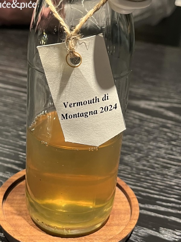 Sa slatkim zalogajima promijenio se i sadržaj čaša. Tako je poslužen koktel kir royal, naravno u lokalnoj verziji – s jabukovim vinom umjesto šampanjca i likerom od planinskog crnog ribiza, s nešto više kiseline. Slijedio je domaći vermouth di montagna 2024 (planinski vermut, na bazi lokalnog bilja).
