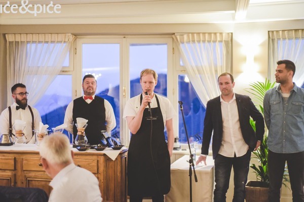 I kad se činilo da meni mora posustati, na red je došlo vrlo kompleksno jelo pod imenom Kopun, zapravo raviol punjen žgvacetom od kopuna, sa sferificiranim kravljim sirom, jusom od kopuna, čipsom od pileće kožice, pekmezom od zelenih rajčica (ponovo drukčiji okus od onih svježih, ljetnih), grožđicama ušećerenim u prošeku i pjenicom od mažurana. To jelo, koje se pokazalo vrhuncem sjajnog četverosljednog niza, a mnogim prisutnima bilo favorit čitavog menija, prštalo je okusima, teksturama i općim skladom savršeno zaokruženog jela. Kad se tome dodao par s kavom Mexico Finca Teresa (položaj plantaže), odabrane zato što u svojoj bogatoj paleti okusa sadržava i finu notu pržene pileće kožice, karamela i umaka od soje, možemo reći da se radilo o doista zanimljivu slijedu.